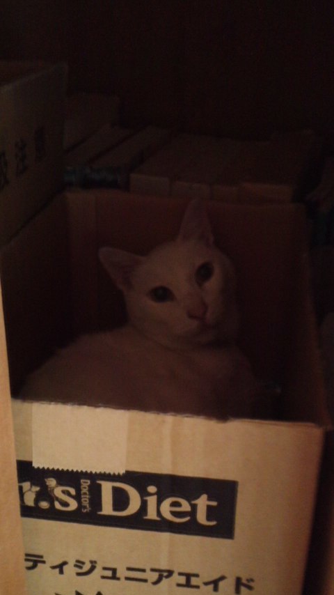 ちょっぴり寒かったのか押入れのダンボールの中で